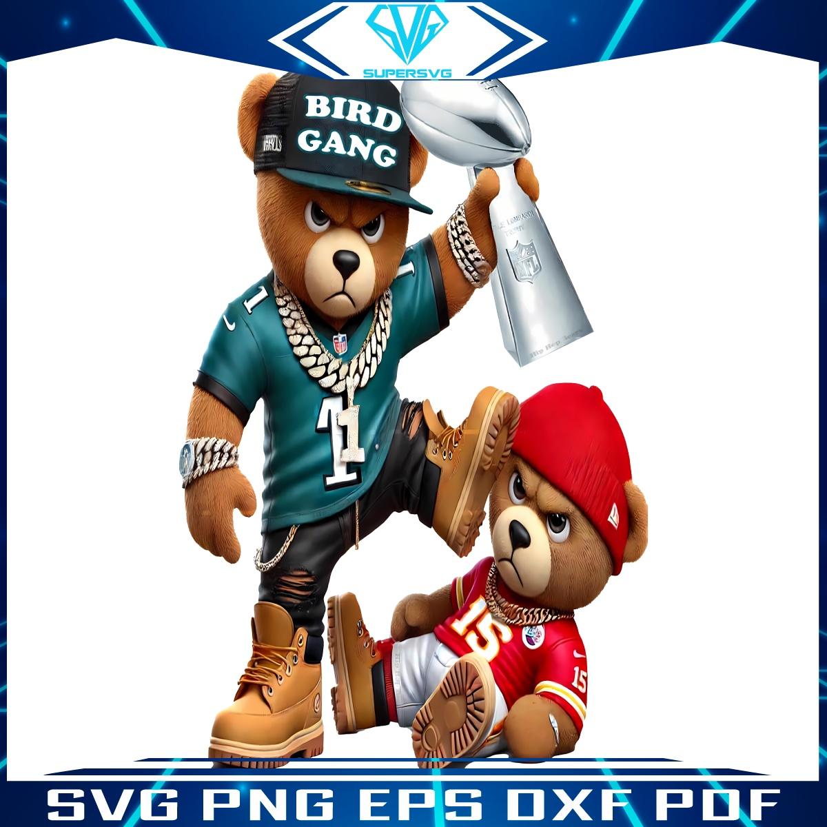 Elevate Your Artistry: Digital Download Details for Eagles Triumph Over Chiefs Adorable Teddy Bear Football Png