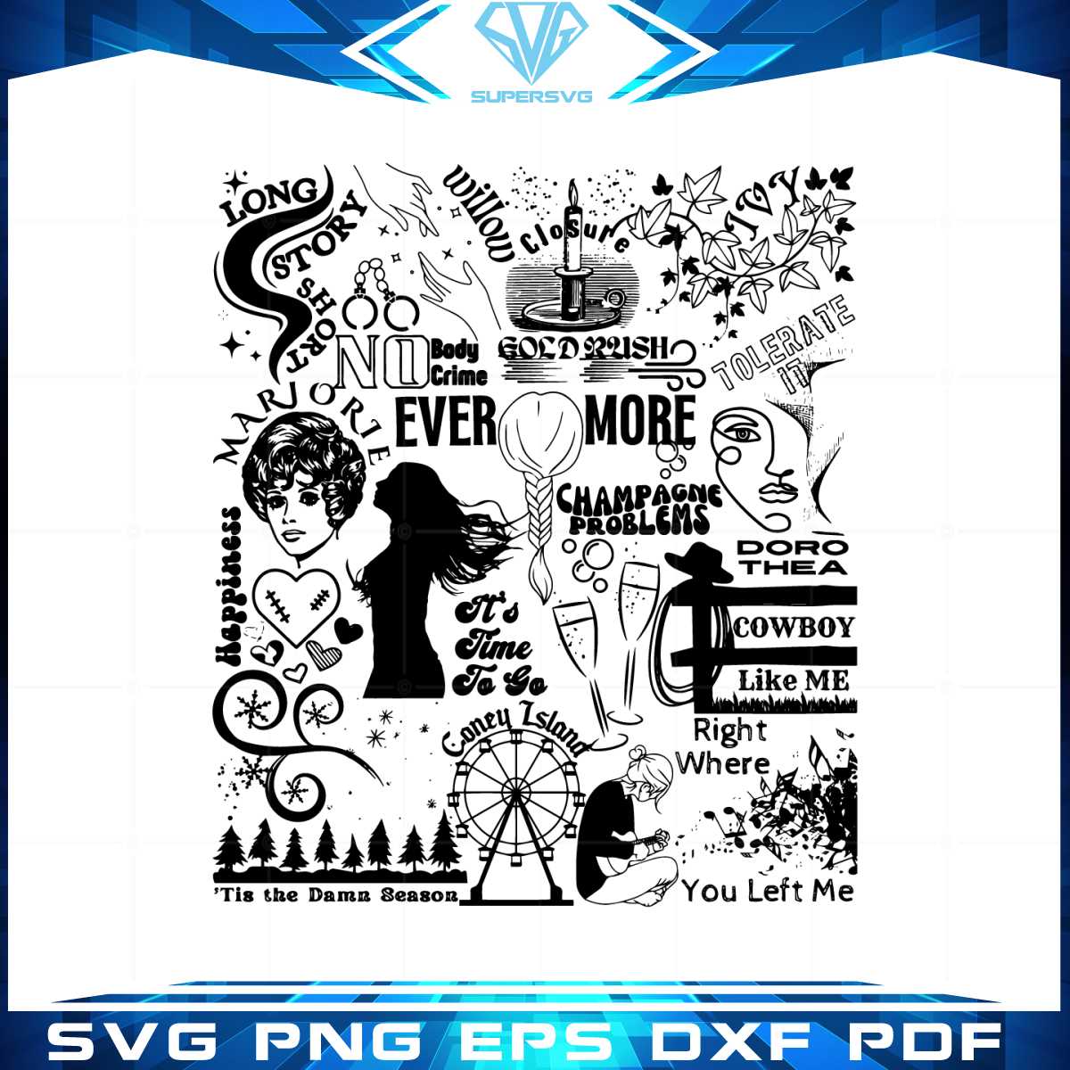 Evermore Track List Taylor Swift Song SVG Graphic Designs Files: