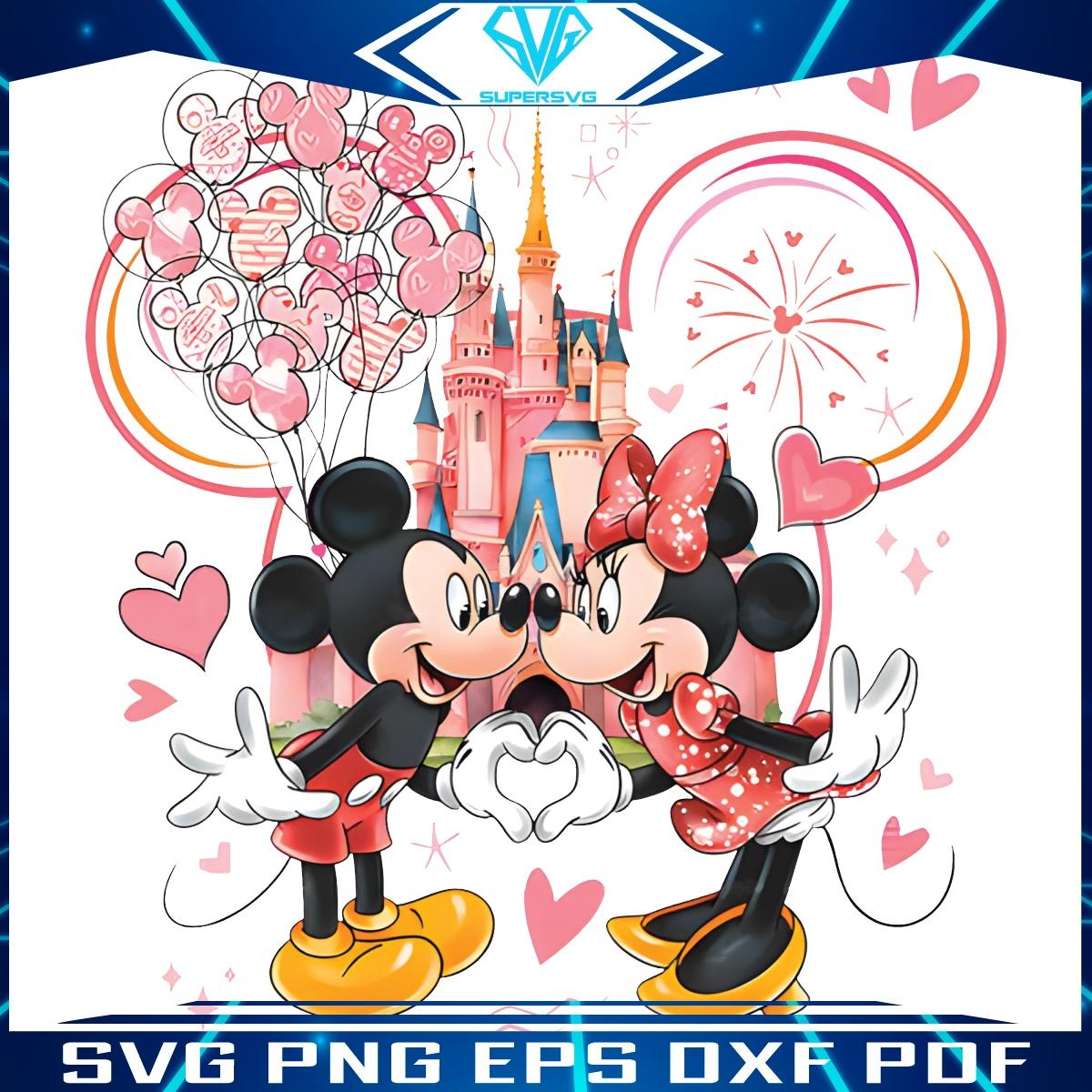 Elevate Your Artistry: Digital Download Details for Mickey Minnie Valentine Magic At Disney Castle Png